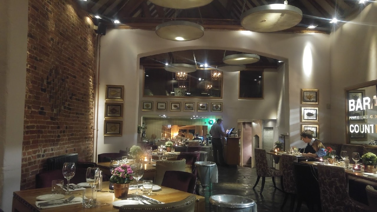 The original flagstones remind diners of the barn's 200-year history, while the on-view glass-fronted kitchen adds state of the art restaurant practices and visual appeal.Granite, pewter and oak are used to dramatic effect within the restaurant